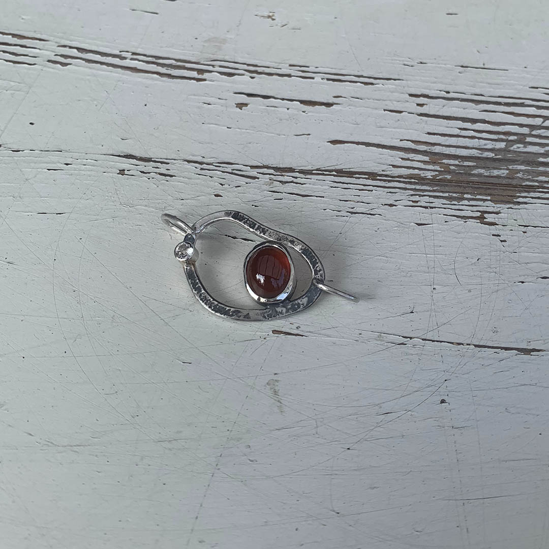 Afmeting edelsteen: granaat 12 x 10 mm en de facetgeslepen witte topaas is 4 mm