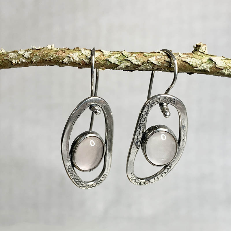 Oorbellen in de unieke InnerJewels stijl. Met natuurlijke, echte, niet geverfde rozenkwarts.